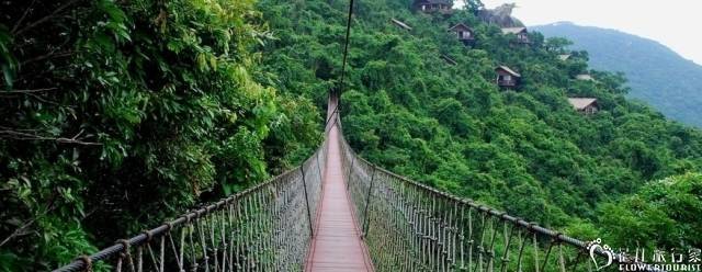 三亚鸟巢分集结地、西区和东区三个部分,舒淇和葛优光着脚走过的林中铁索桥,就是连接集结地和西区之间的“景观大道”。